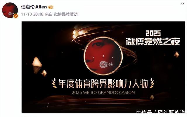 实至名归 在今年的微博竞燃之夜上,任嘉伦获得了“年度体育跨界影响力人物”。